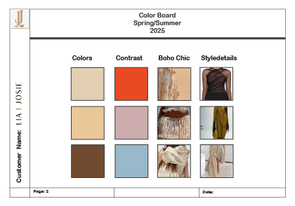 Mood, Color and Silhouette Board for a spring/summer 25 womenwear and accessories collection